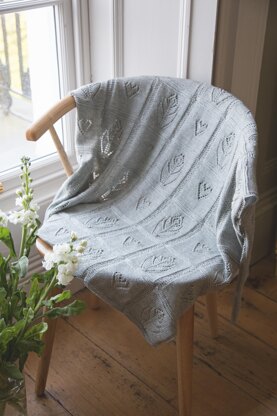 A delicate, lacy little blanket which would make a lovely baby blanket or shawl. Knitted in squares, it is an ideal project to make when travelling. Originally knitted in Rowan Superfine Merino 4ply, any suitably soft 4ply yarn knitting to the same tension would be fine.