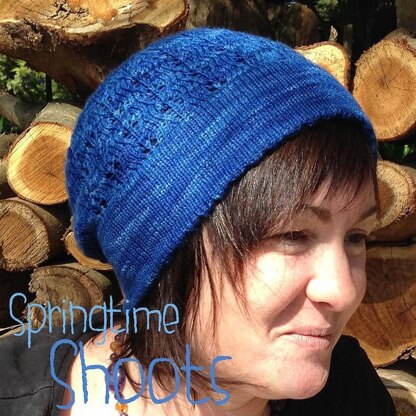 ‘Springtime Shoots’ is a slightly slouchy, almost-a-cloche which is knit in the round. It is the 4ply/Fingering weight version of Shoots Beanie DK and is the perfect hat for Spring or Autumn weather. It is knit from the bottom up, starting with a short introduction to the traveling leaf lace pattern as the inside of the brim. The brim is then completed in stocking stitch, with a delicate picot edge, and turned up and attached to form a snuggly double layer. The body of the hat is knit in this simple, easy to keep track of, lace pattern. Crown is decreased while maintaining the lace - you will need to know how to work small circumference knitting in the round - either using magic loop or double pointed needles.