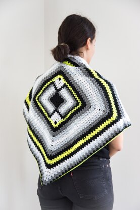 Worked in neutral shades with a splash of neon, Squareplay is a triangular shawl with an interesting construction that plays with angles and stripes for a modern, geometric style.