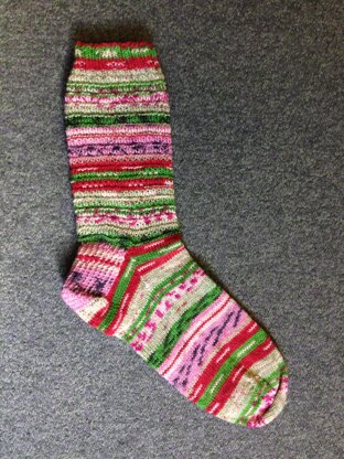 This is a knitting pattern for an short sock. It is knitted in the round with 4 ply sock yarn. The length of the foot can be altered to fit.