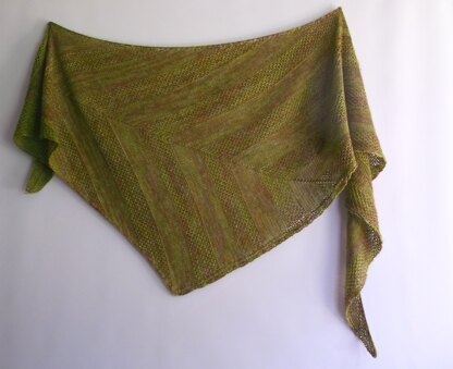 This lightweight shawl uses two strands of lace weight yarn held together to create a soft, drapey, textured garment. Stocking stitch and a simple honeycomb pattern.