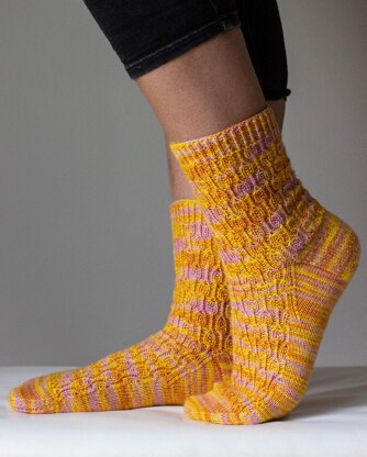 Shown in Knitologie Cozy Sock, colorway Citrus Squeeze