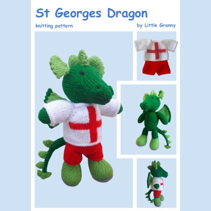 This pattern tells you how to knit a St Georges Dragon wearing a top down jumper in England colours and shorts. His boots are knitted as part of his body but the clothes are removable. He is knitted flat on two needles and the pieces are seamed up afterwards. This pattern comes as a PDF file and contains step by step instructions, colour photographs and handy tips. You will need: DK, Worsted or light Arran Yarn 4 Ply or sport Weight Yarn A pair each of 3mm, 2.75mm and 2.5mm straight knitting needles A tapestry needle A long tapestry needle Large glass headed pins Toy stuffing 1 x 6mm buttons Finished size is approximately 24cm tall. Happy knitting Little Granny