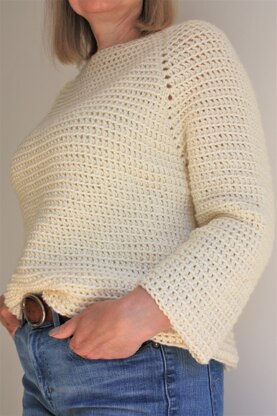 Cool and comfortable the seamless sweater is worked from the top down with a raglan sleeve for a casual look.