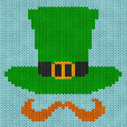 St Patricks Day Leprechaun Green Hat with Mustache Knitting Chart
