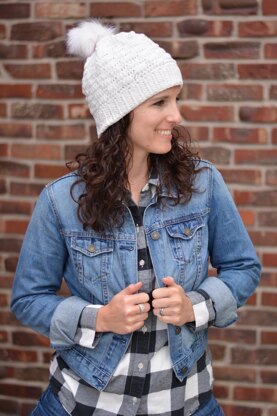 This hat is made from the bottom up and the body is worked in the round using beginner stitches in the front and back loops, along with puff stitches for a textured finish.