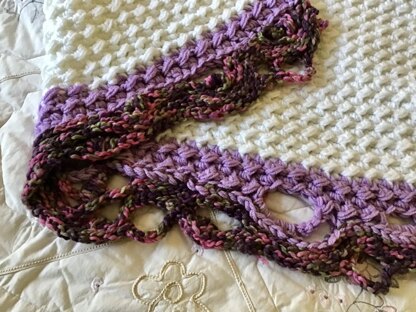 - Boucle stash yarn used in shades of pink, lavender purple etc.