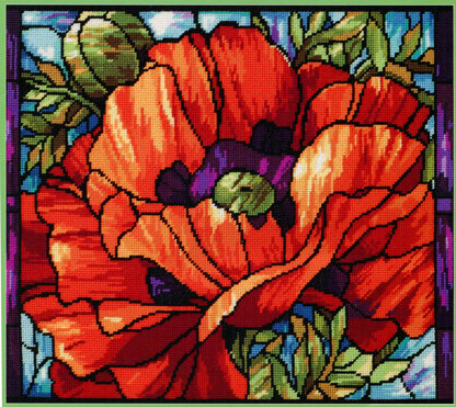 By Nancy Rossi. Our Stained Glass Poppies is a striking design by Nancy Rossi. This design is reminiscent of Art Nouveau style has an elegant and timeless feel and would look great in any dГ©cor. This design stitches up equally well as needlepoint since there is no back-stitching. And it is a perfect companion to our Stained Glass Butterflies and Stained Glass Sunflowers.