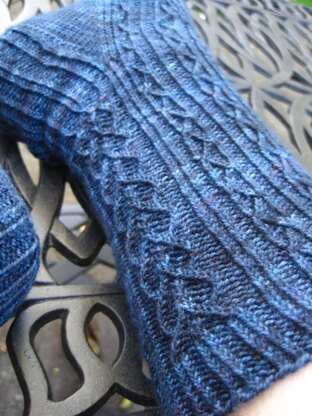 Life’s rough when you’re a vampire slayer. One minute you’re falling in love or contemplating your destiny…the next minute you’re stalking off into the shadows and figuring out how to wash vampire dust out of your clothes. With a day job like that, you’d better at least be heading out in style. These socks have you covered: stabby, stake-through-the-heart cables extending from the leg and onto the foot, eventually diminishing and disappearing altogether, with only darkness and plain stockinette left behind. Stake, or be staked. It’s all in a day’s work.