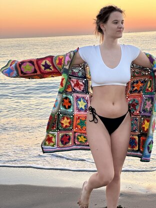 Crochet Star granny square cardigan PDF pattern by Tania Skalozub