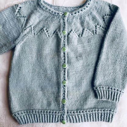 The star yoke cardigan is a seam free design, knitted from the bottom up. An attractive band of eyelets effortlessly form the button holes on the front bands. The front neck is lowered using short rows. Instructions are give for ages 1 to 8 years. The cardigan is knitted in Debbie Bliss Rialto DK. It is the perfect project for anyone wanting a go at seam free knitting to produce a charming little cardigan with timeless appeal.
