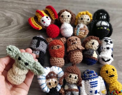 Star Wars amigurumi crochet PATTERN keychain size Ahsoka Tano Mando Baby Yoda Padme Rey R2D2 Leia Luke Solo Chewbacca Ewok Vader C3PO