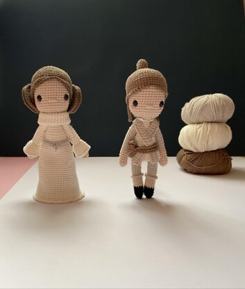 PRINCESS LEIA AND REY (POCKET SIZE), is my tribute version of the Star Wars saga movie characters so you can crochet your own dolls.