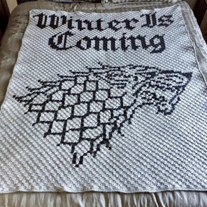 STARK BANNER BLANKET Winter is coming... are you ready for it? Featuring the sigil and words from House Stark, this corner-to-corner crochet blanket will keep you warm, whether you are King of the North, a Lannister bride, or a Faceless Man. Wrap yourself in this and feel as snug as being hugged by Hodor.