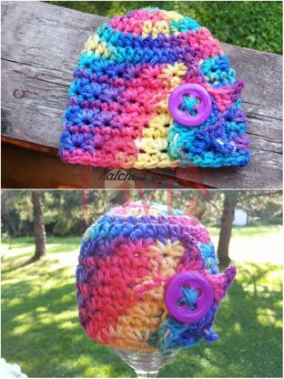 Uses the star stitch!! Which I found to be fun and different.. it made the effect of the flag!! I made this one for Memorial Day.. if you are proud to be an American.. this hat is perfect!! Star applique included in design.. Also fun with a solid color!!