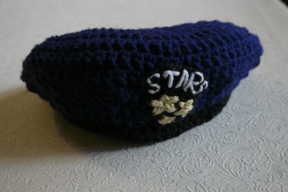 A crochet beret inspired by the beret worn by Jill Valentine in the first Resident Evil video game. Great addition to a homemade costume or to just wear for fun. I crocheted many berets leading up to this one, and this is by far my favorite. Comfortable, fairly lightweight, and the Red Heart yarn keeps the shape well. You can also forgo the S.T.A.R.S. badge to make a plain beret for any situation.