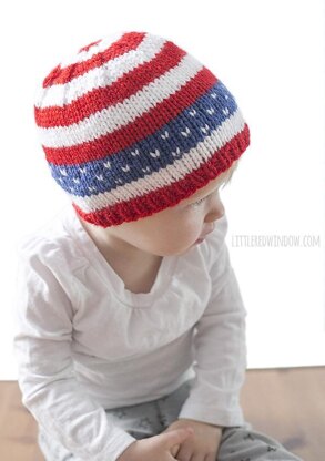 This adorable Stars & Stripes Baby Hat Knitting Pattern is perfect for a cool Memorial Day, chilly air conditioning on the 4th of July or any time you're feeling particularly patriotic. Fun bright red and white stripes and an easy-to-knit blue and white star band make this a great project to practice new fair isle knitting skills. Pattern includes a super easy to print PDF with instructions for all 4 sizes.