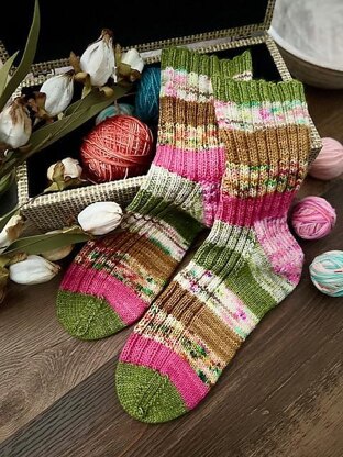 Simple. Effortless. Cozy. Knit top down, these socks were made for slow mornings and crisp days. The kind spent tucked away at home or sitting in a coffee shop. The Stash Dash Socks are meant for all the bits and bobs leftover from other sock projects, as well as your mini skeins. Whether layered under boots or worn with your favorite jeans, The Stash Dash Socks bring comfort and ease to every step. And they will look oh-so cute! This pattern equips you with detailed written instructions, a stitch glossary, a quick video to help with grafting the toe.