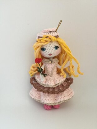 Pattern is available in English US terminology. instant digital download after payment. Size: The doll is 8 inches tall. Depending on hook/yarn used. Skill level is Intermediate/ with some easy bits Basic skills of crochet are needed. BriarRose is Crochet wrong side outward. Doll is made from feet up to head, minimal sewing. Dress, hat are removable. Detailed Pattern with photos and links. Printable eyes. More details in pattern.