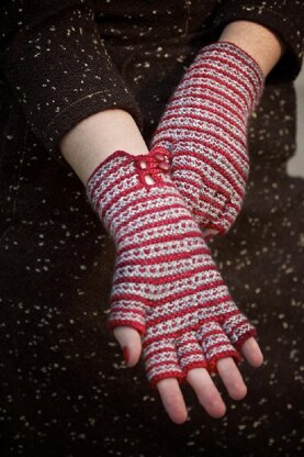These gloves use a garter-stitch-based mosaic stitch for interest and to evoke a highrise full of tantalizing neighbors. The buttoned cuff extends the retro feel from fingertips to wrist.