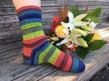 Stepping Into Fall Socks will take you to a new level of fun in your toe-up sock knitting! Inspired by a lovely self-striping colorway, you can make any self-striping yarn more beautiful by following the sequence of textures in your sock.