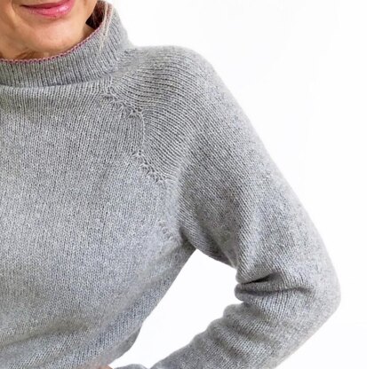 A cool and modern sweater with a stand-up collar and unusual shaping. The inside of the double cuffs in contrasting color create a decent effect or a flashing eye-catcher. Choose from several shaping options (straight, waist shaping, A-Line) to knit the perfectly fitting sweater for you. This sweater is worked from the top down in the round.