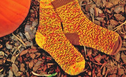 The Stereoisomer Socks pattern is a charted slip-stitch mosaic pattern consisting of an 8-stitch repeat. The pattern is written for toe-up socks using magic loop with an afterthought heel.