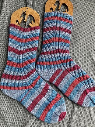Still Warped is a variation on a basic ribbed sock, with the ribbing worked in four angled columns.