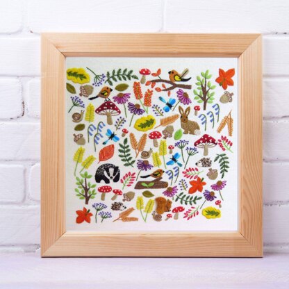 Beautiful, Colourful and Fun Hand Embroidery Designs Discover your next stitch journey.\n\nHere at Stitchdoodles we are all about creativity. Sitchdoodles was created in 2019 after I was finding it difficult to find hand embroidery patterns that were exciting and a bit different from the usual. Wanting to combine our love of hand embroidery stitches, traditional sampler techniques as well as quilt designs(!) I decided to come up with something myself and it has evolved into an array of wonderful and colourful designs that will hopefully inspire and excite people to pick up a needle and get 'happy stitching’.\n\nWhat you will receive:\n• This pattern is available as a PDF download so you can access the pattern as soon as you would like.\n• Each pattern comes with details on the colors, threads, and materials required.\n• Easy to follow instructions are given along with full-color photos.\n• All templates are provided actual size.\n\nFind yourself immersed in a wonderful woodland full of forest creatures amongst the colorful flora and fauna with this A Walk in the Woods Hand Embroidery Pattern. This modern embroidery sampler will allow you to escape to another place every time you stitch and is such a delight for you to see it come to life through all the colors and stitches. \n\nThe pattern details the floss and stitches I used in the example photo but feel free to make your own choices – it’s up to you!