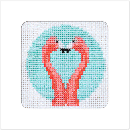 Stitchfinity Flamingo Heart Mini Card Cross Stitch Kit - 13cm x 13cm