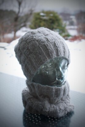 Easy to knit hat and neckwarmer using 2 treads held together. To fit head circumference: child/teen: 48-52 cm woman: 53-57 cm man: 58-64 cm.