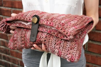 Named for and inspired by A Hundred Ravens colorway, entitled Lucy Stone, to honor the first Massachusetts female to receive a college degree, this modern daytime clutch is all style and flair. Simple to make, the finishing makes this accessory which, in this awesomely squoishy yarn, one that you will want to reach for again and again.