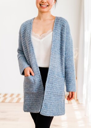 Chic, minimalist and wonderfully versatile, the Stonewash Coatigan is the perfect fall layer! This a modern crochet cardigan features tapered sleeves and hidden pockets for a coat-like look (hence the name Coat-igan). The long length makes this cardigan super easy to pair over jeans, dresses and leggings and the clean, streamlined look means this coatigan will enhance anyone’s wardrobe!