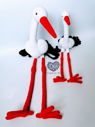 Size Himalaya Dolphin Baby yarn was used (the stork measures 40 cm when sitting, body length: 87 cm) and Himalaya Dolphin Fine (the stork measures 35 cm when sitting, body length: 60 cm). Do wykonania użyto włóczki Himalaya Dolphin Baby (bocian mierzy 40 cm na siedząco, długość ciała: 87 cm) oraz Himalaya Dolphin Fine (bocian mierzy 35 cm na siedząco, długość ciała: 60 cm).