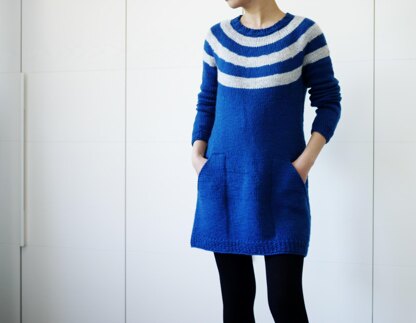 Storybook is your perfect lounge wear: it's comfy, it's loose fitting and it comes with pockets. It is worked seamlessly from the top down. The pockets are worked at the same time as the tunic; there is very little finishing to be done. It's mostly stockinette stitch worked in the round, making it the perfect mindless knitting project. I made mine while reading storybooks to my toddler.