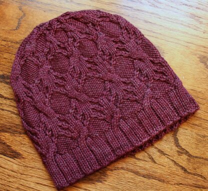 Charted and written instructions are provided, and this pattern is appropriate for the intermediate knitter, or the adventurous beginner comfortable with knitting cables and working in the round.