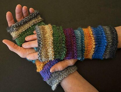 Materials Tahki Yarns “Mesa” (98 yds/50gr; 100% superwash merino): approximately 23 yds color 001 slate (col A), and 14 yds each 006 twilight (col B), 004 sedona (col C), 003 cascades (col D), 007 sunset(col E), 005 cactus (col F), 002 desert (col G). Size US7 (4.5mm ) double point needles or size to obtain gauge. Stitch marker Tapestry needle
