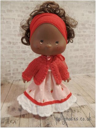This is my own pattern that fits Vintage Strawberry Shortcake dolls. It can be scaled up to fit other dolls too by using different weights of yarn and larger needles. I have made them in 4 ply yarn for Lati yellow and DK yarn for Blythe.