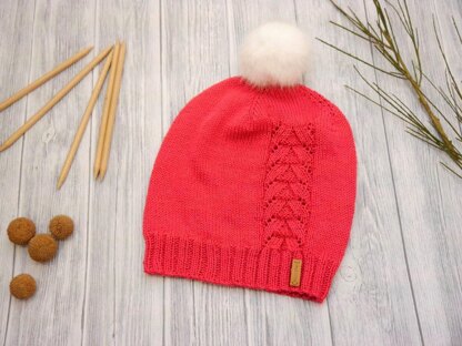 Diese Beanie besteht aus einem einfach zu strickenden Zopfmuster, welches ohne Zopfnadel gefertigt werden kann. Dieses Design wurde geprägt von einem altbewährten Links-Rechts-Muster. Die Beanie ist stets ein guter Begleiter an windigen Tagen in der Stadt.