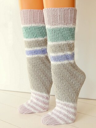 Es sind KUSCHEL- und WOHLFÜHL-SOCKEN für Abende auf der Couch oder als Bettsocken, damit man erst gar nicht kalte Füße bekommt. Die Socken sind schnell und einfach gestrickt und auch sehr gut für Anfänger geeignet.