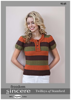 Striped Button Neck Top in Twilleys Freedom Sincere - 9145 is a Knitting pattern by Twilleys, available as a Downloadable PDF and includes instructions in English. Super fun to make, this pattern could be your next masterpiece!