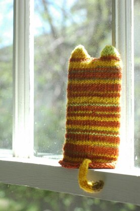 This simple but adorable kitty is a great stashbuster to use up leftover sock yarn. Unique construction keeps the cozy closed. Be warned, it’s almost impossible to stop after you’ve made one!