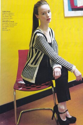 This is a pattern for a Striped Jacket, originally published in Knitting magazine. It is knitted sideways so that the stripes can be done in rows, with pockets, textured welts. Photos Laurel Guilfoyle for Knitting magazine.