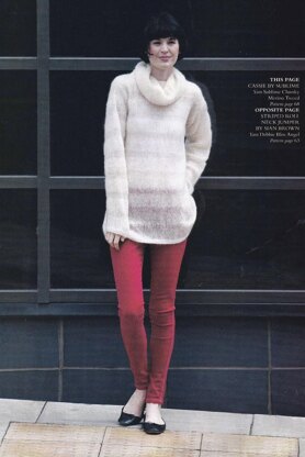 This is a pattern for a striped roll neck jumper, originally published in Knitting magazine. The stripes are worked by using one then two ends of yarn on the same size needles. Photo Laurel Guilfoyle for Knitting magazine.