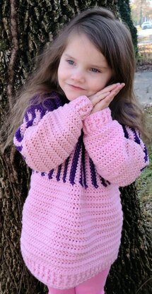 This sweater pattern is one that has a textured feel with unique vertical stripes running across the chest. It's a sweater that every child would cherish.
