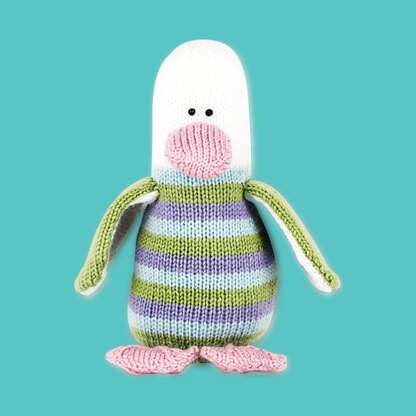 Stripes is a cute and cuddly penguin. This toy uses increases and decreases for shaping, and the body is knitted in stripes of colour in stockinette. Designed by Amanda Berry @fluffandfuzz, the penguin is knitted in acrylic DK yarns on single pointed needles (not in the round). For confident beginners and above, other techniques used include casting on and off, knits, purls, increases and decreases, knitting stripes, and seaming to finish.