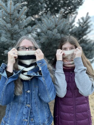 This cowl is knit in the round and has increases to lend to a funnel shape so it will sit better when worn.