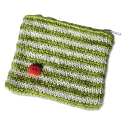 This purse is a simple project for beginner knitters to practice stockinette and knitting stripes. The purse is closed with a zipper which is sewn in by hand. Designed by Amanda Berry @fluffandfuzz, the purse is knitted in acrylic DK yarns on single pointed needles (not in the round). For beginners and above, other techniques used include seaming to finish. The finished purse measures 11cm x 9.5cm.