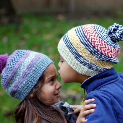 This is a fun stripy, ziggy zaggy toque in four sizes from children to adults. With alternating stripes and colourwork, this is a great first project for stranded knitting. You’ll only ever work 2 colours at a time and for a maximum of 10 rows at a time. The in-betweens are simple stripes.