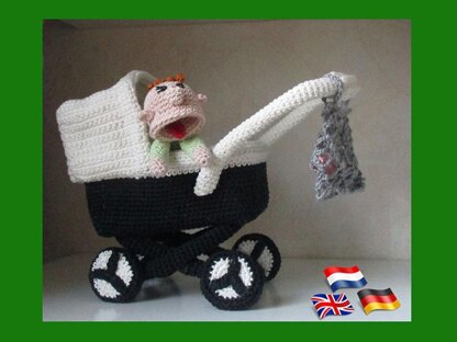 ENGLISH * Simple pattern if you know how to crochet Magic Ring, chain , slip stitch, single crochet, half double crochet and double crochet. * This manual is available in English, Dutch and German. * The stroller is 20 x 20 cm (hook size 2). * The manual is very detailed and contains many photos.* If you have any problems and / or questions about my instructions please contact me by email. Attention! This is a crochet pattern, not a finished product